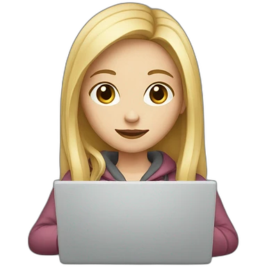 white girl with blonde hair sitting on the couch laptop on her lap emoji