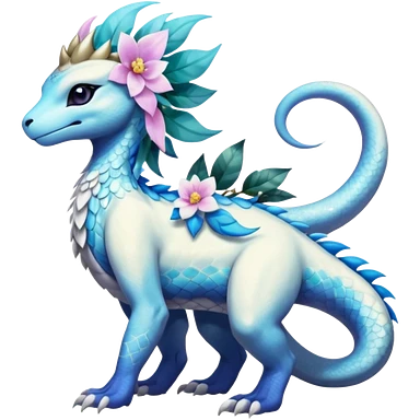 Shiny Glossy Pastel Light Divine Reptilian Beautiful Floral Snowy Pretty Absol-Amaura-Suicune-Cobalion-fusion, full body emoji