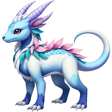 Shiny Glossy Pastel Light Divine Reptilian Draconian Furry Scaly Hairy Feathery Bovine Goated Feline Beautiful Floral Snowy Pretty Absol-Amaura-Suicune-Cobalion-fusion, full body emoji
