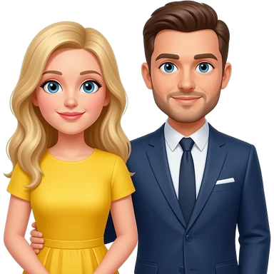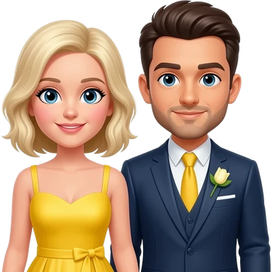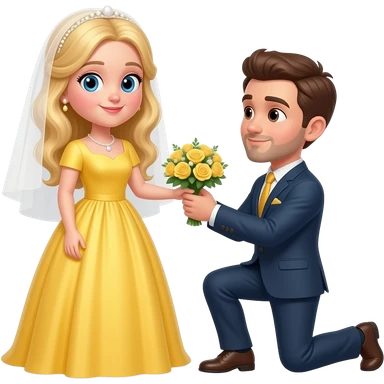 White blonde bride brunette groom with short facial hair proposal yellow dress emoji