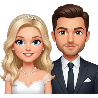 White blonde bride brunette groom with short facial hair emoji