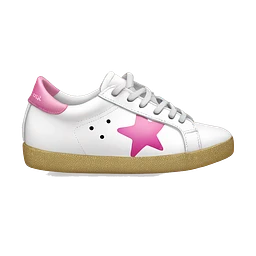 A blonde girl with blue eyes and a blow out as the hairstyle. She is standing with a white Chanel bag and wears flared Jeans and a light pink pullover. For shoes she wears golden goose. emoji