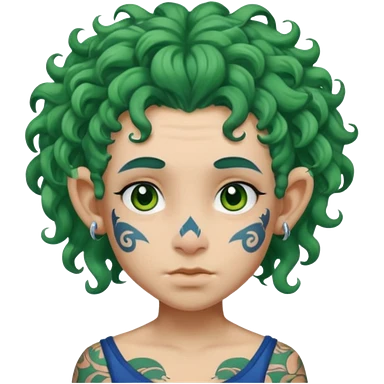 green haired heavy blue tattooed big head accessory big nose mid size ear young emoji