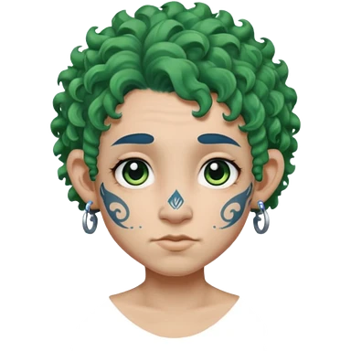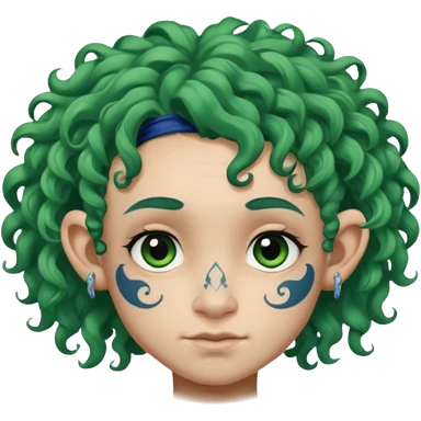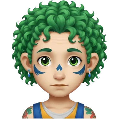 green curly haired heavy blue tattooed big head accessory big nose mid size ear young emoji
