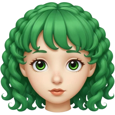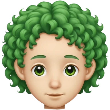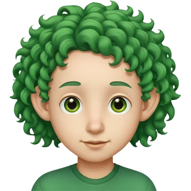 green curly haired with hair bangs big head accessory big nose mid size ear young emoji
