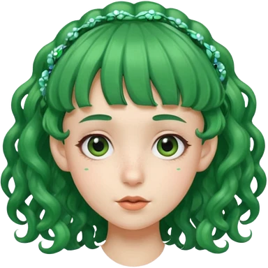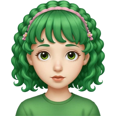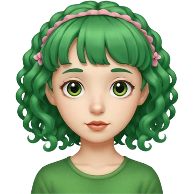 green curly haired with hair bangs big head accessory big nose mid size ear young piercing emoji
