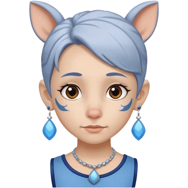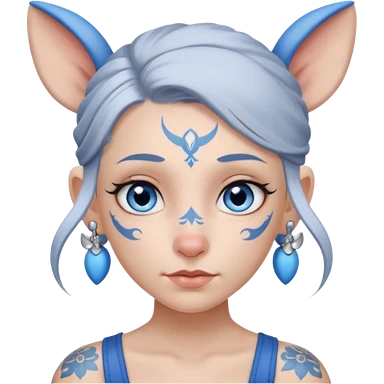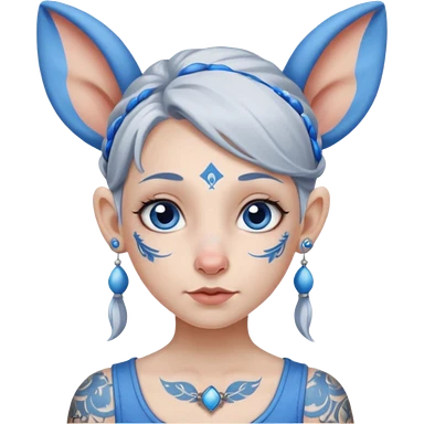 white-gray haired heavy blue tattooed head accessory big nose big ear young girl emoji