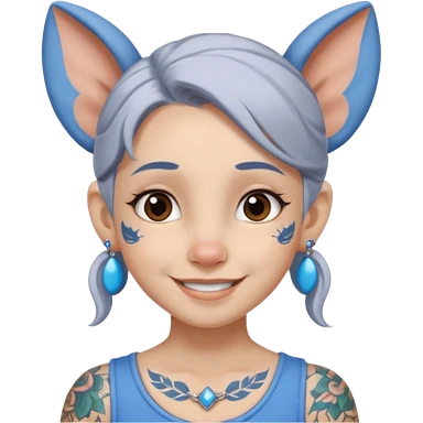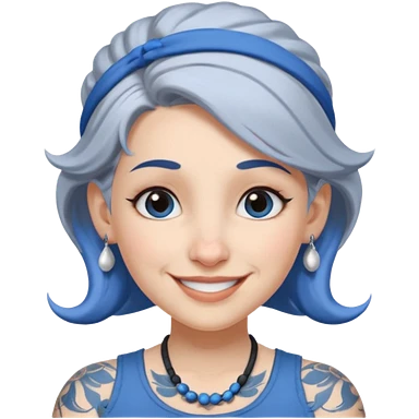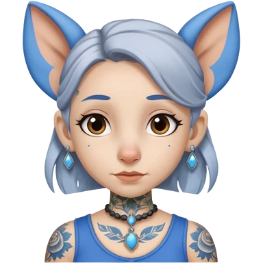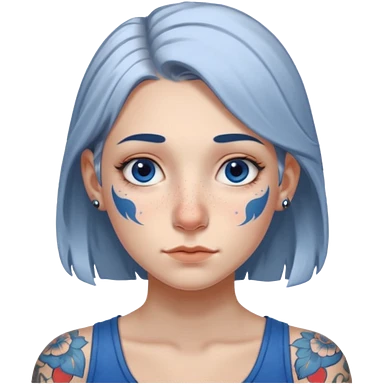 white-gray haired heavy blue tattooed big head accessory big nose mid size ear young girl emoji