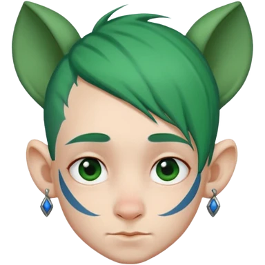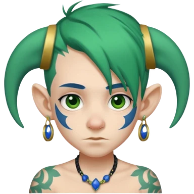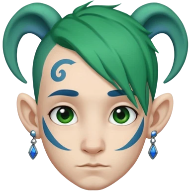green haired heavy blue tattooed big head accessory big nose mid size ear young emoji
