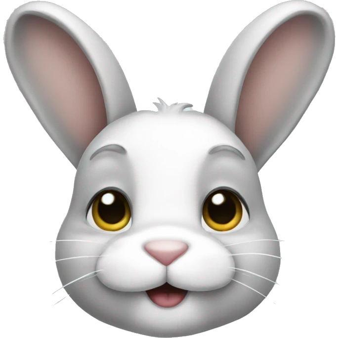 White bunny with grey nose, pointy grey ears and grey circles around eyes emoji