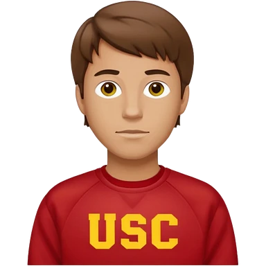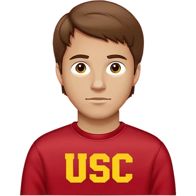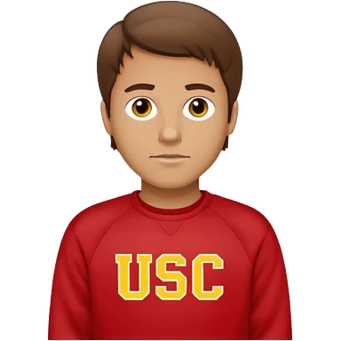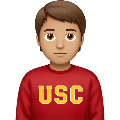white man with brown hair in a red sweatshirt with USC in yellow letters emoji