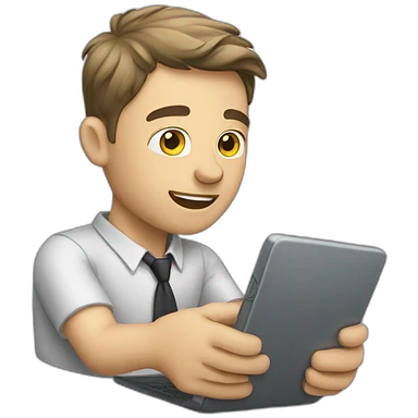 guy with light brown hair and light blue eyes typing on a computer emoji