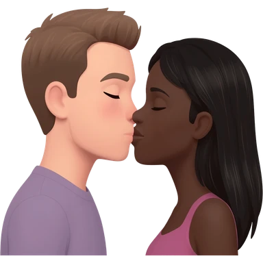 White guy with brown hair and brown eyes kissing a black brown skin girl with brown hair and dark brown eyes emoji