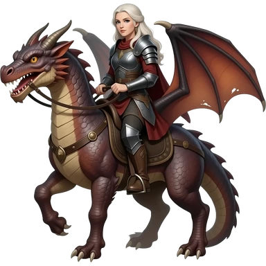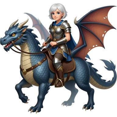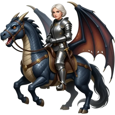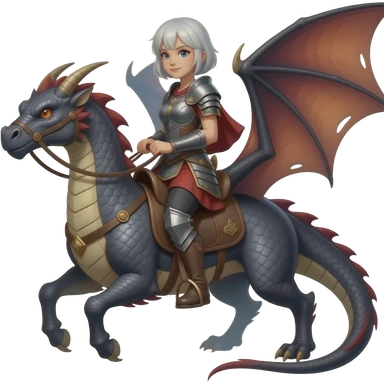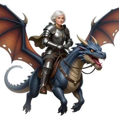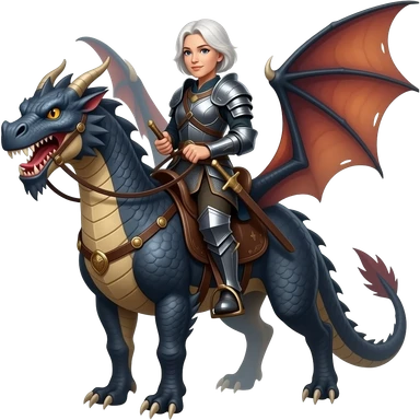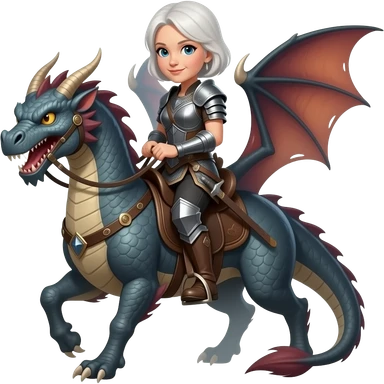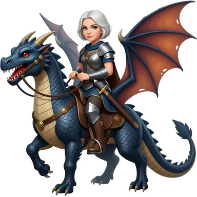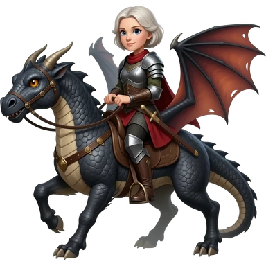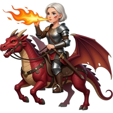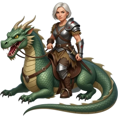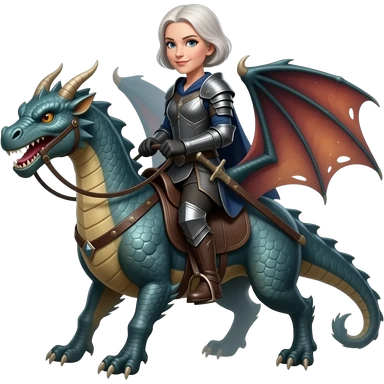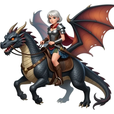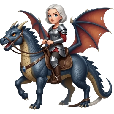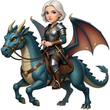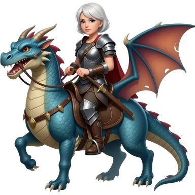 white hair older woman warrior riding dragon emoji | AI Emoji Generator