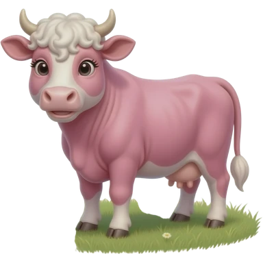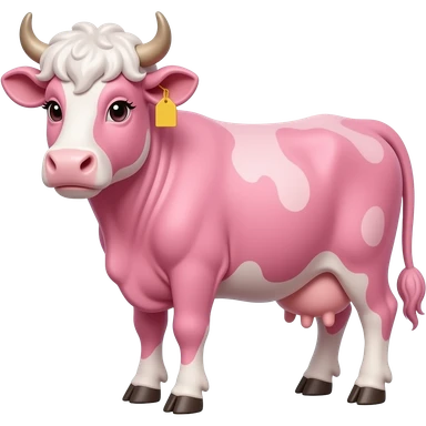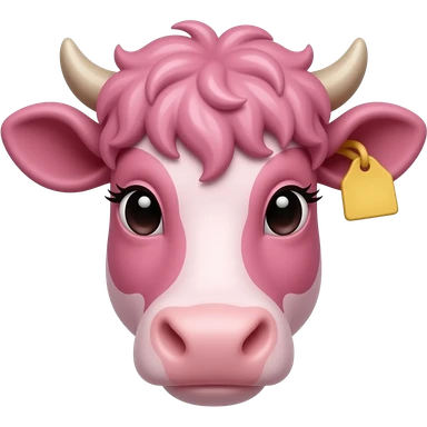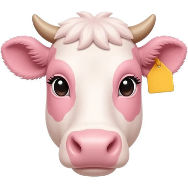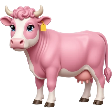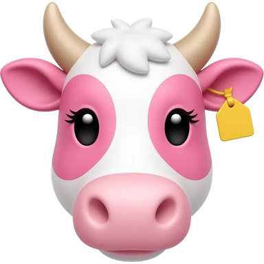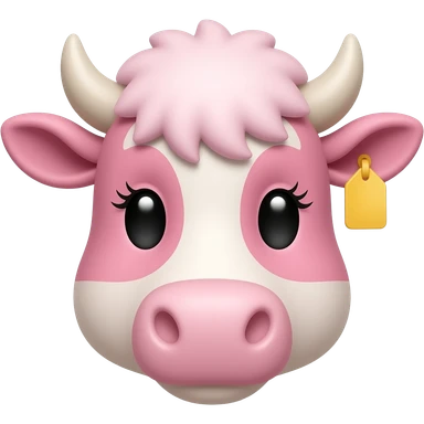 white-haired curly anime guy with long white eylashes with cow horns and pink cow ears with yellow tags in both cow ears poses in caramel dance pose with his fists up to his head with red blush on his cheeks in pink pajamas with strawberries emoji | AI Emoji Generator