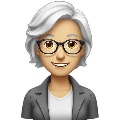 Long White haired Woman with glasses smiling hazel eyes eyes emoji
