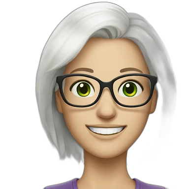 White haired Woman with glasses smiling green eyes eyes emoji