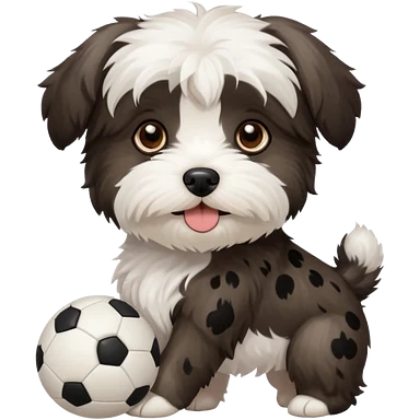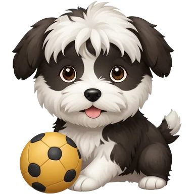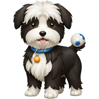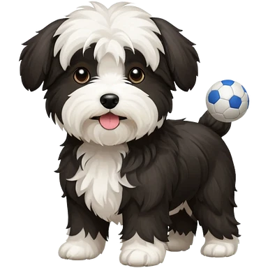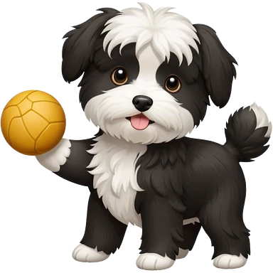 black and white Havenese dog standing with ball emoji