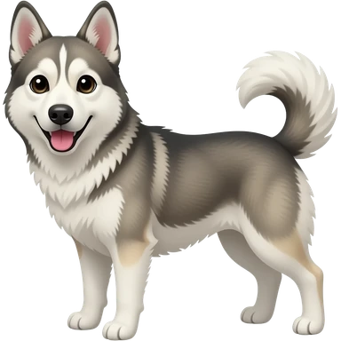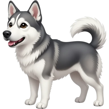 black, grey, and white blue heeler dog, emoji style, playful pose, wagging tail, minimal background emoji