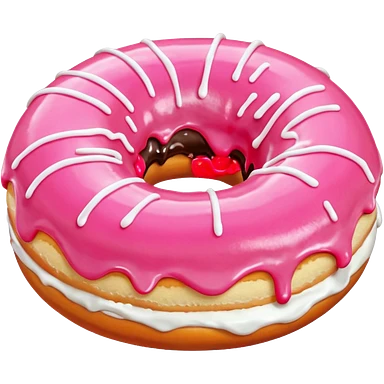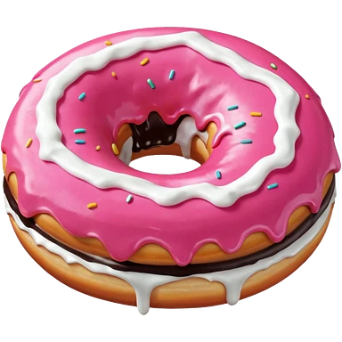 Pink donut with white icing running down and through it emoji
