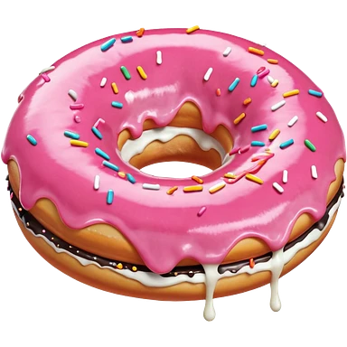 Pink donut with excessive amounts of white icing running down and through the hole of the donut, a waterfall of white icing. emoji