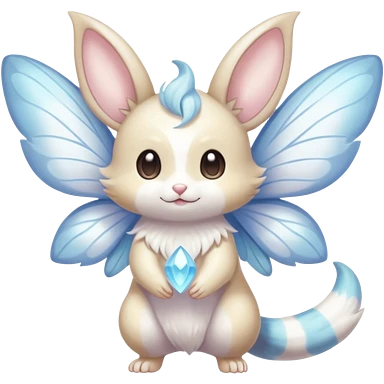 White shiny sparkly ethereal pastel cute adorable kawaii divine winged furry fairy-Fakémon-Minccino-Meowstic-hybrid-fusion (full body) emoji