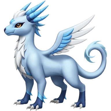 Icy Arctic Frost-Blue Pale-Shimmering Snow-Dusted Majestic Absol-Kyurem-Nargacuga-Meloetta-Latias-fusion-creature (full body) emoji