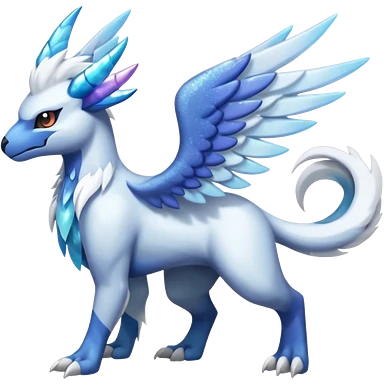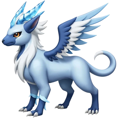 Icy Arctic Frost-Blue Pale-Shimmering Snow-Dusted Majestic Absol-Kyurem-Latios-Nargacuga-Meloetta-Latias-fusion-creature (full body) emoji