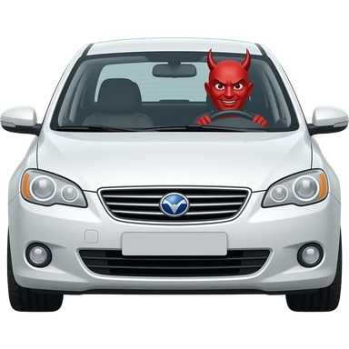 white car driver with a demon head emoji
