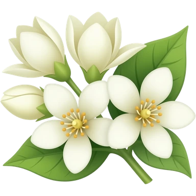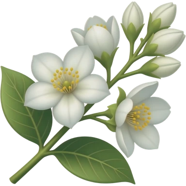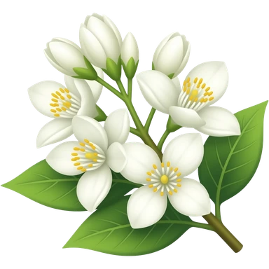 Syrian jasmine flower with delicate white petals and green leaves, elegant emoji