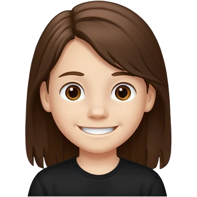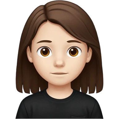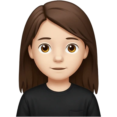 whit brown hair and brown eyes a 10 year old kid Long hair and anime black shirt emoji