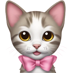 white fluffy chubby kitten with pale pink bow nerdy glasses emoji