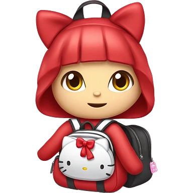 hello kitty sanrio design, white cat with 3 whiskers, black eyes, small yellow nose, no mouth, red bow on the left ear emoji