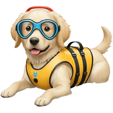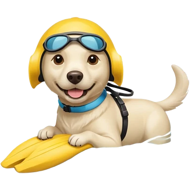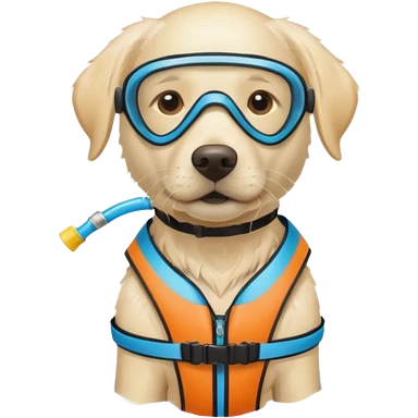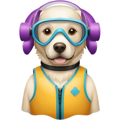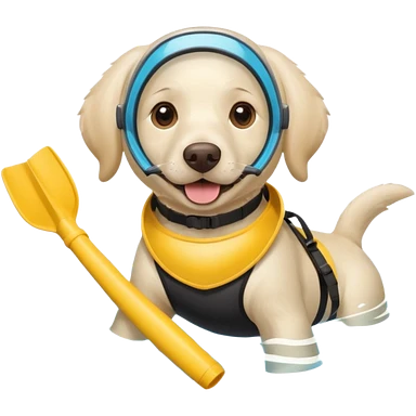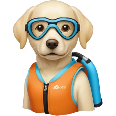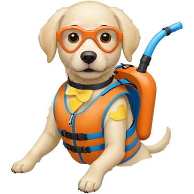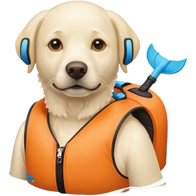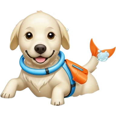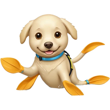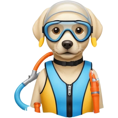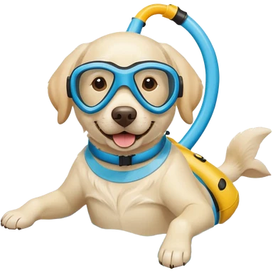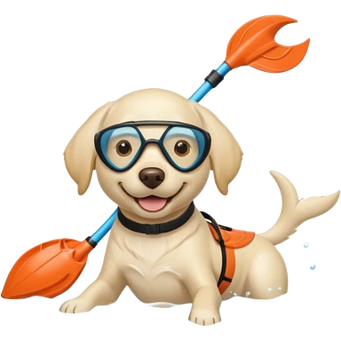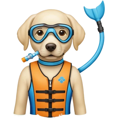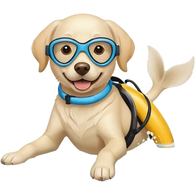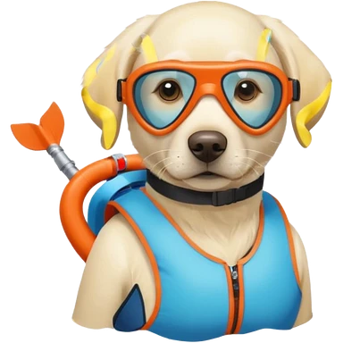 White labrador with snorkel and swimming fins emoji