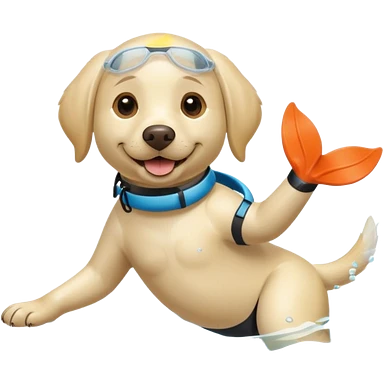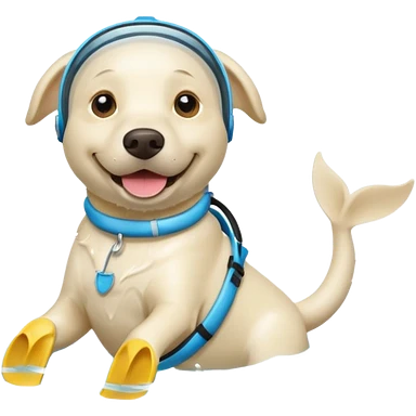 White labrador with snorkel and fins emoji