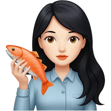 White lady with black hair holding a salmon emoji