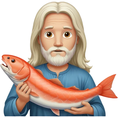 a white Jesus with a long beard holding a salmon emoji