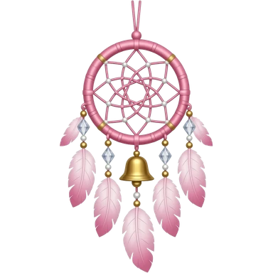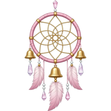 Hanging pastel Sakura-pink white gold crystals white-pearly dreamcatcher with bells and feathery ornament emoji