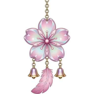 Hanging Iridescent pastel pink sakura crystals white-pearly suncatcher dreamcatcher with bells and feathery ornament emoji
