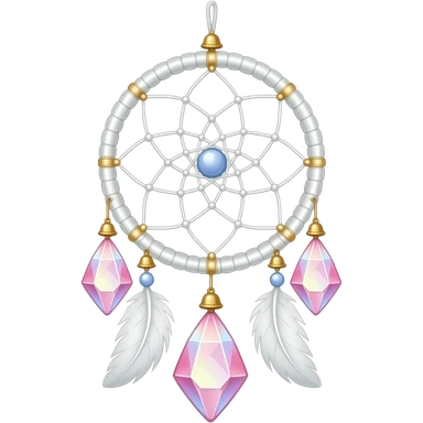 White leather dreamcatcher with rainbow feathers and beads emoji | AI Emoji Generator