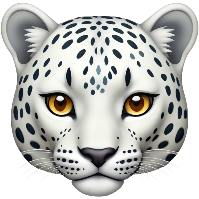 Cinematic-Comical-Snow-Leopard-Portrait-Emoji – Head tilted dramatically with an exaggeratedly amused expression, featuring a thick, spotted white-and-grey coat with a dense ruff around the neck, wide, piercing icy blue eyes filled with playful disbelief. emoji