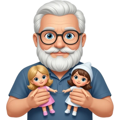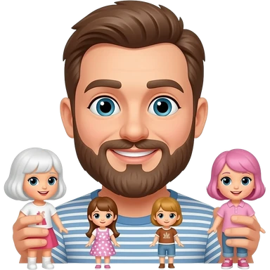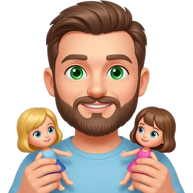 White guy with brown beard and light skin guy green eyes playing with dolls emoji