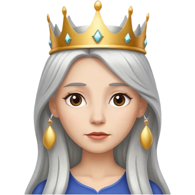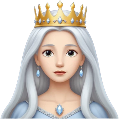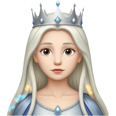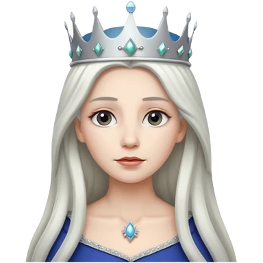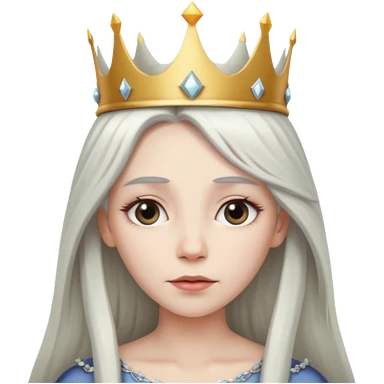 White silver straingt Long Haired Women, Queen with crown — soft expression emoji