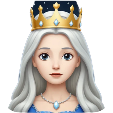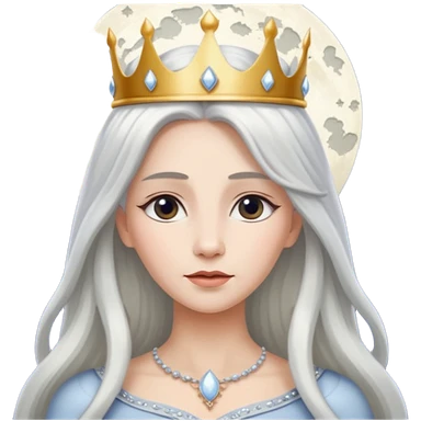 White silver Long Haired Women, Queen with crown — soft expression, moonlight tone emoji