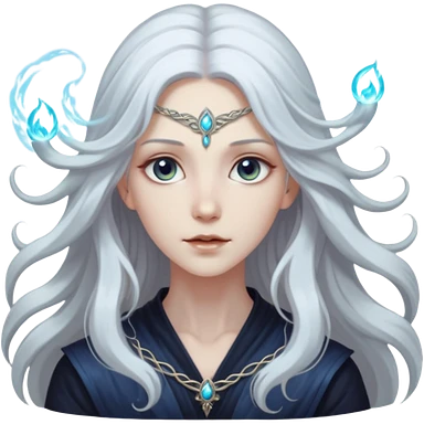 White silver Long Haired Women, Mystic seer — hair floating, glowing eyes emoji
