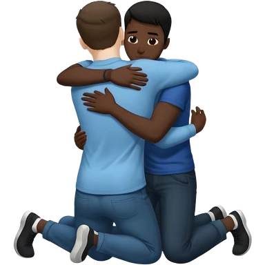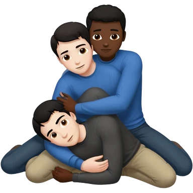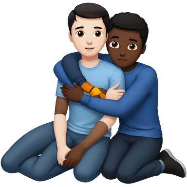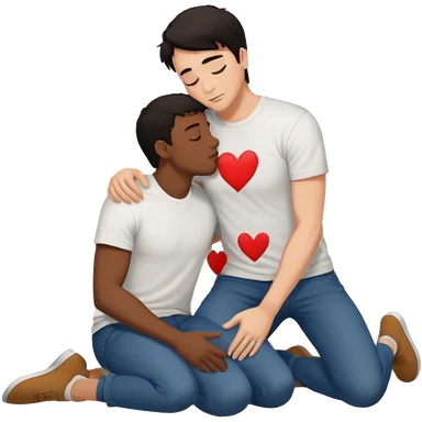 White male dark hair and black adult male naked, spooning on floor.,touching, kissing, in love emoji | AI Emoji Generator