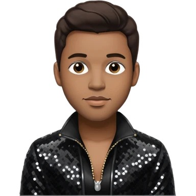 Sammie, Male R&B Singer with dark brown hair, black sequin outfit emoji