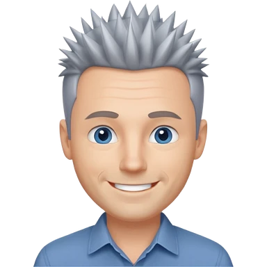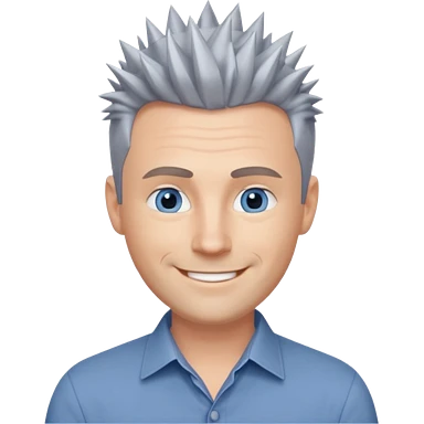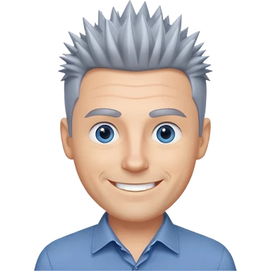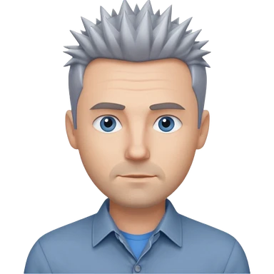 40 yr old white man short spike hair grey dress shirt blue eyes emoji
