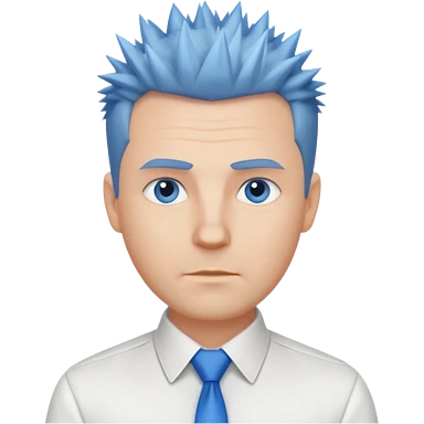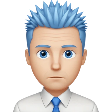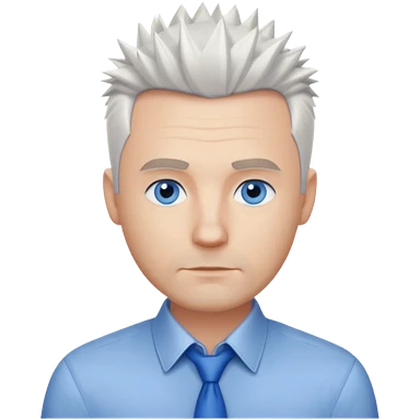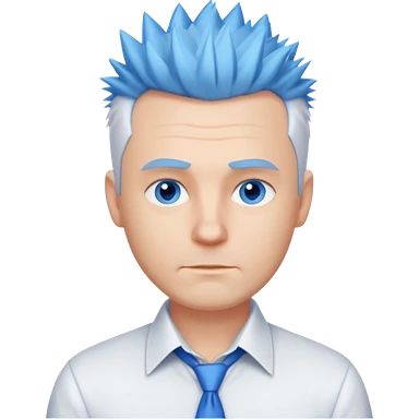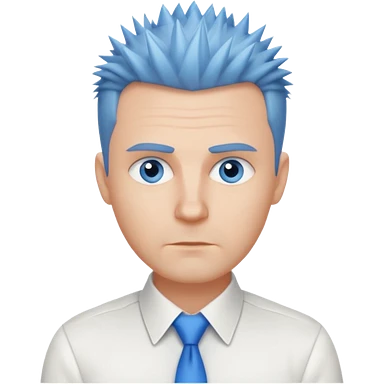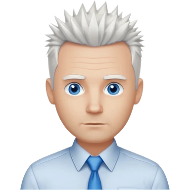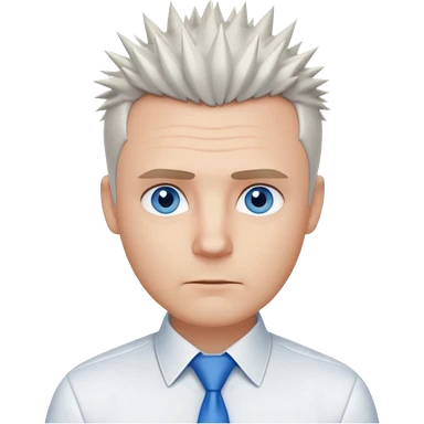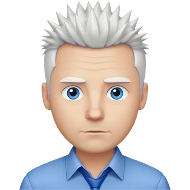 40 yr old white man short white spike hair dress shirt blue eyes no smile emoji
