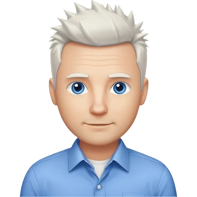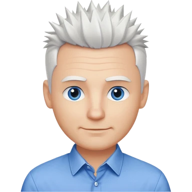 40 yr old white man short white spike hair dress shirt blue eyes smallsmile emoji